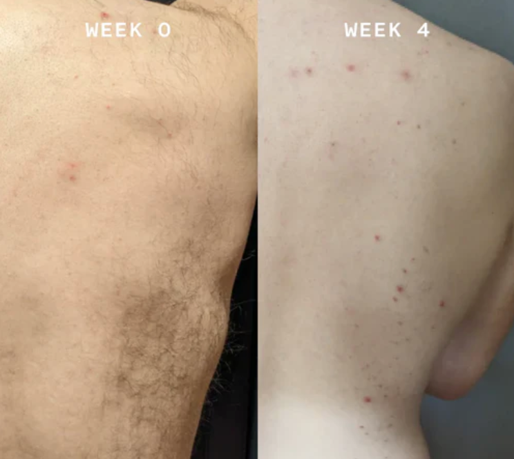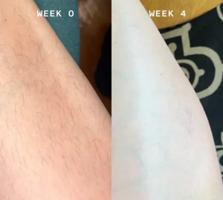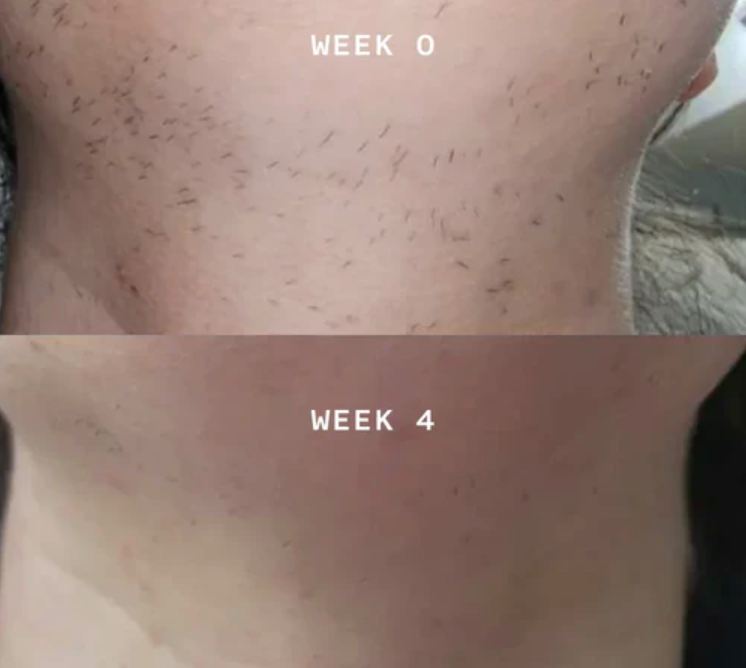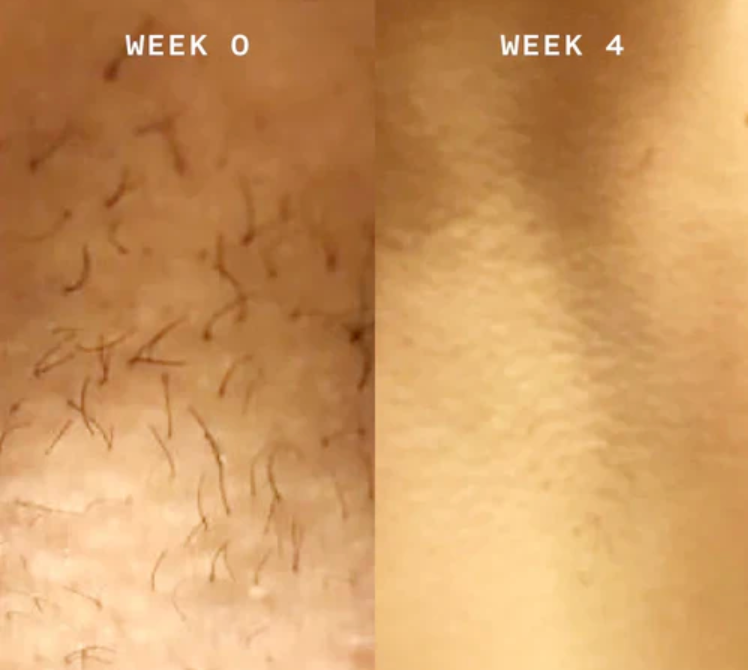 Hair reduction in the first 2 weeks. Regrowth is softer and finer, and skin looks smoother with fewer bumps.