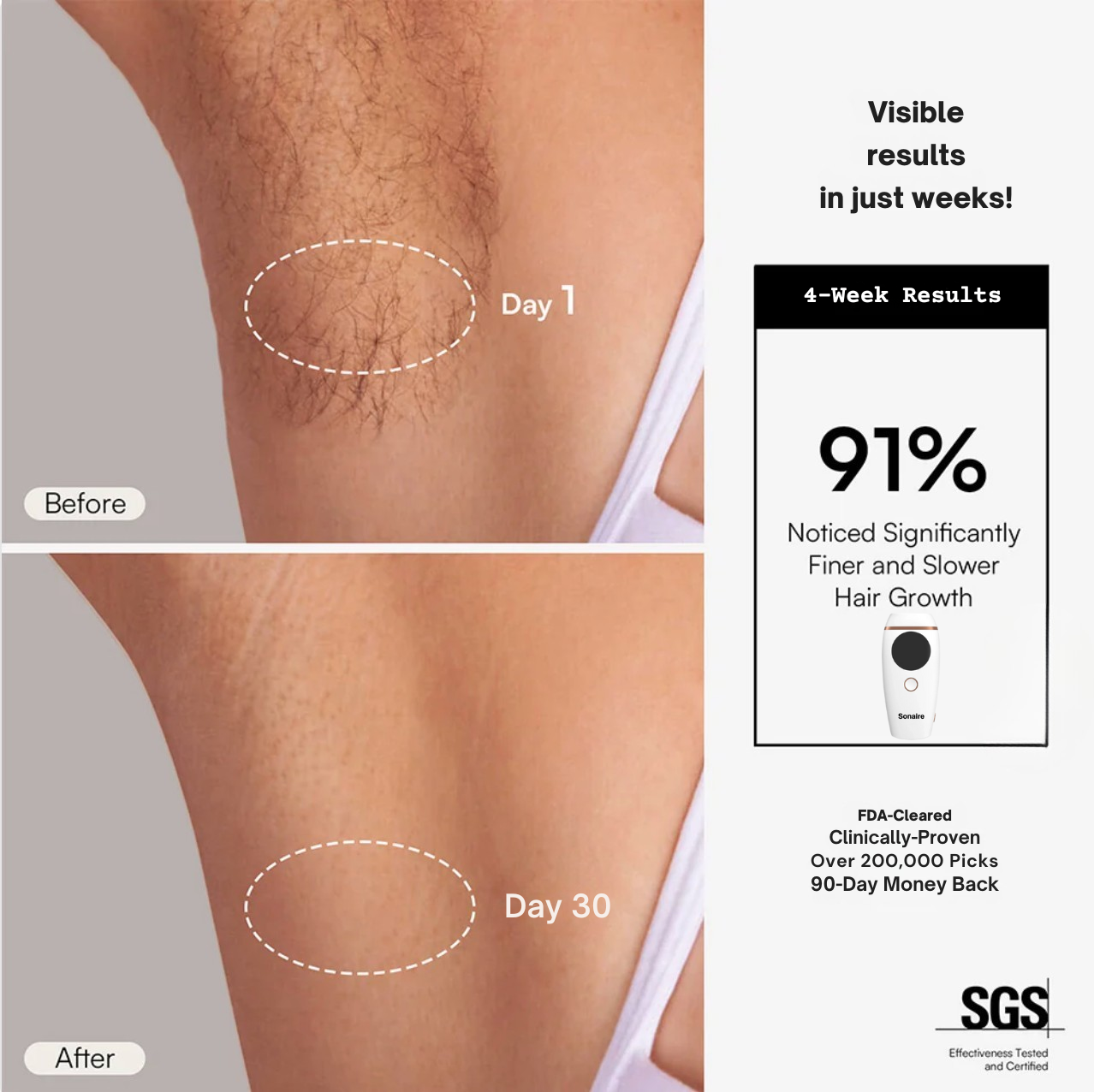 Real results, smoother skin, and a confidence boost you’ll notice in just weeks. Join the community choosing Sonaire for safe, clinic-quality permanent hair removal—right at home.
