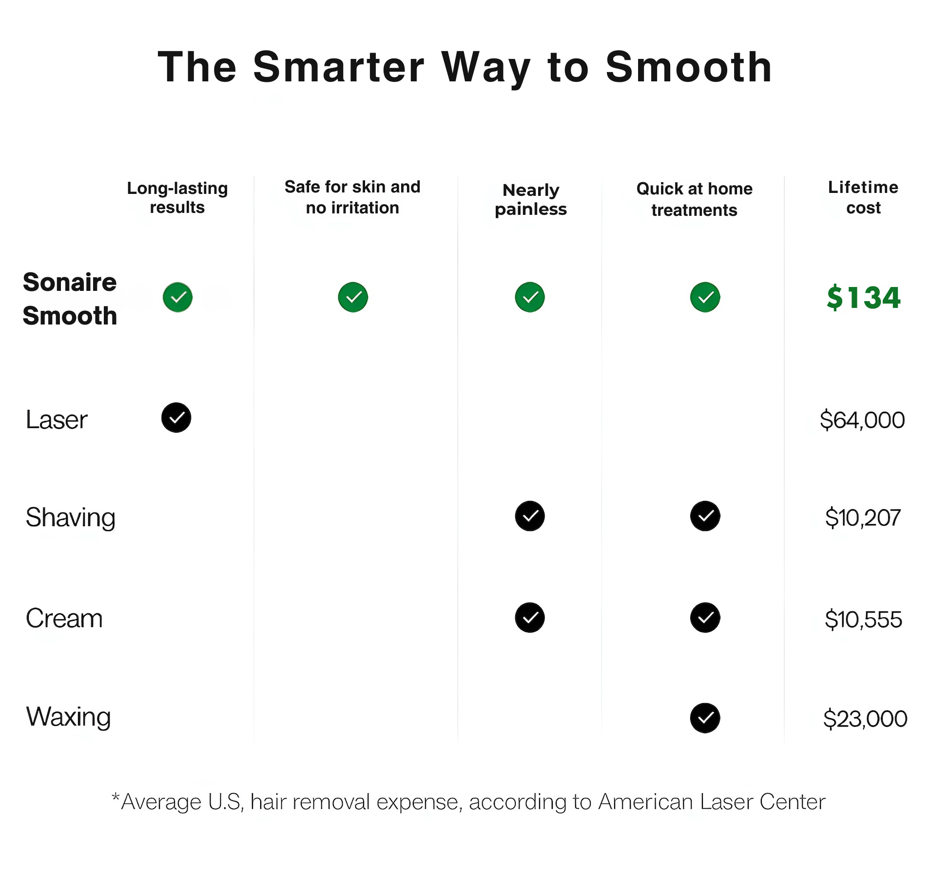 Waxing hurts. Laser costs thousands. With Sonaire, you get painless, lasting results — right at home